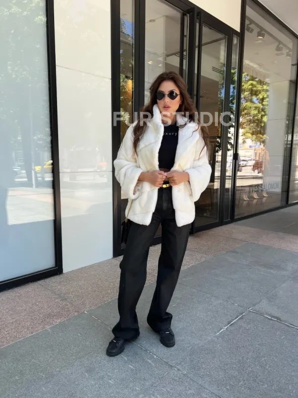 Белая короткая норковая шуба 100336