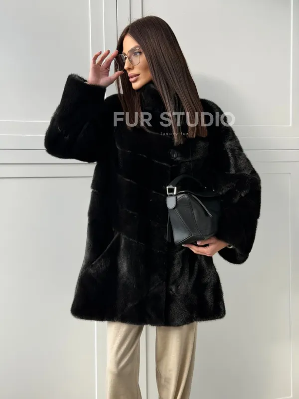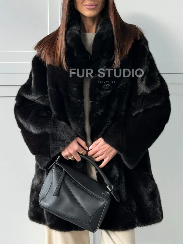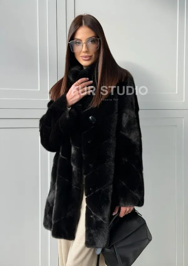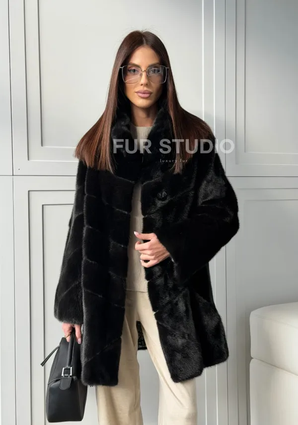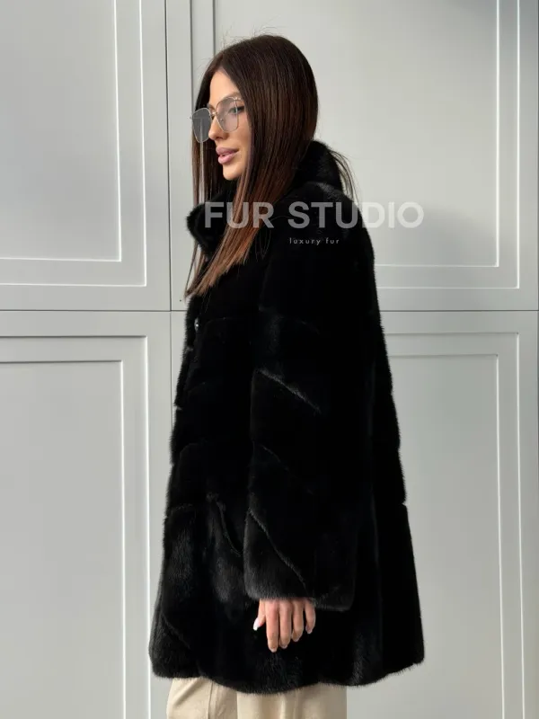 Черная норковая шуба - стойка воротник доступна для покупки в нашем шоуруме Furs Studio в . У нас так же есть доставка во все города России. Добавьте немного роскоши в свой гардероб с этой шубой, которая будет служить вам многие годы.
