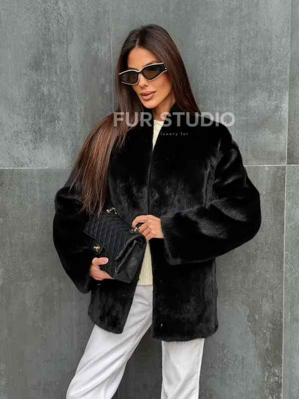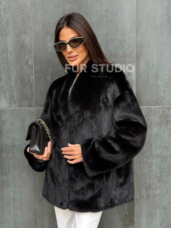 Черный норковый полушубок V-образный воротник доступна для покупки в нашем шоуруме Furs Studio в . У нас так же есть доставка во все города России. Добавьте немного роскоши в свой гардероб с этой шубой, которая будет служить вам многие годы.