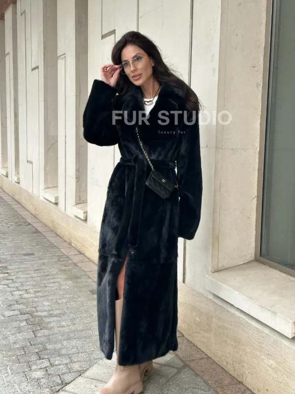 Черная норковая шуба NAFA MINK с поясом в пол доступна для покупки в нашем шоуруме Furs Studio в . У нас так же есть доставка во все города России. Добавьте немного роскоши в свой гардероб с этой шубой, которая будет служить вам многие годы.