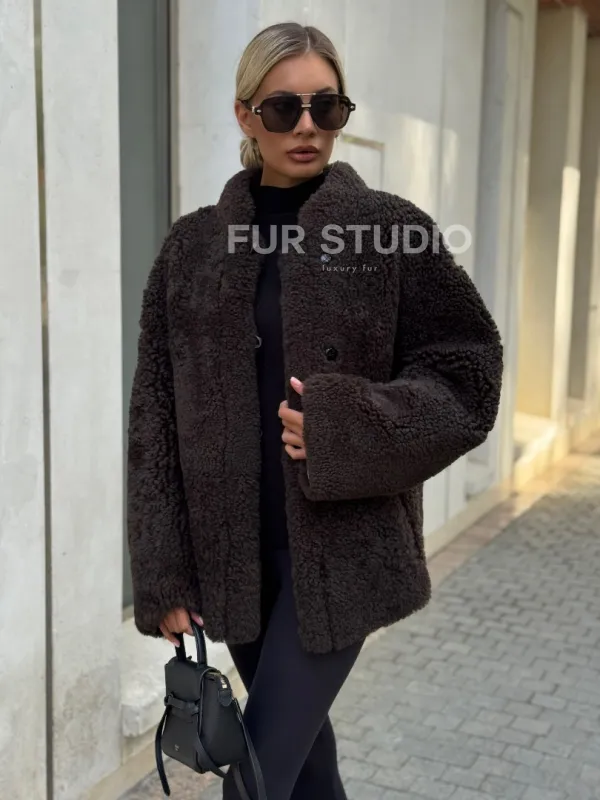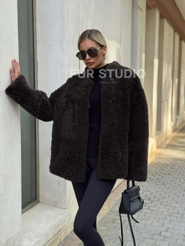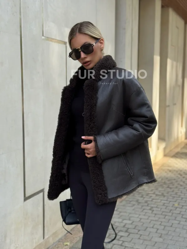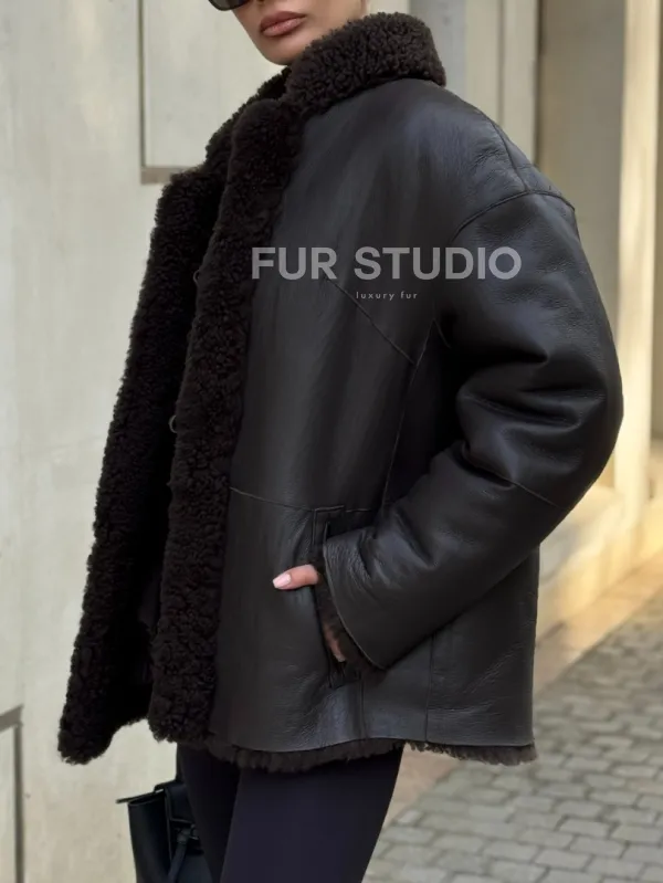 Двусторонняя коричневая дубленка из овчины 102256