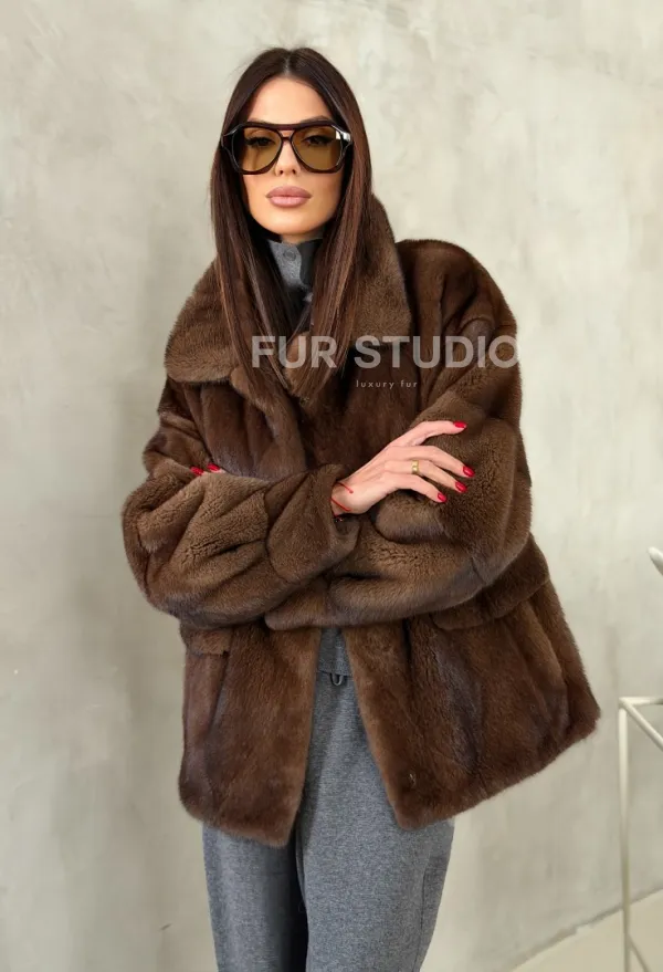 Мех данной шубы аукционная норка, цвет коричневый. Предлагается в размерах от 42 до 50. Длина модели 65-70 см, что выгодно подчеркивает фигуру девушек. Эта модель идеально подойдет для девушек и женщин, предпочитающих роскошные натуральные меха.