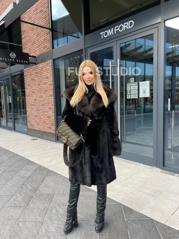 Норковая шуба с капюшоном из меха куницы – модель, которая никогда не выйдет из моды. Норка всегда указывает на особый статус владелицы, о ней мечтают все представительницы прекрасного пола. Нежный мех бережно позаботится о комфортной температуре, даже если на улице сильные морозы. Шикарный капюшон из меха куницы сохранит прическу в любую непогоду.