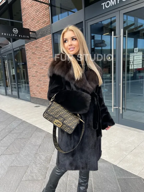 Норковая шуба с капюшоном из меха соболя седена 1/2 100101