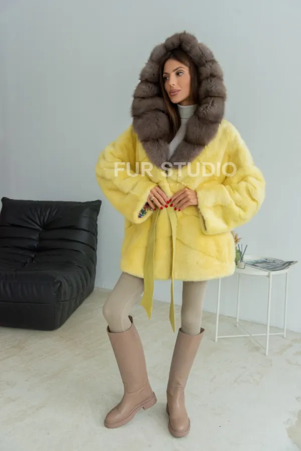 Норковое пончо - шуба с капюшоном из меха куницы - желтого цвета доступна для покупки в нашем шоуруме Furs Studio в . У нас так же есть доставка во все города России. Добавьте немного роскоши в свой гардероб с этой шубой, которая будет служить вам многие годы.