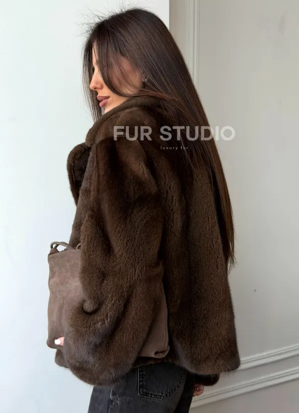 Мех данной шубы аукционная норка, цвет коричневый. Предлагается в размерах от 42 до 48. Длина модели 55-60 см, что выгодно подчеркивает фигуру девушек. Эта модель идеально подойдет для девушек и женщин, предпочитающих роскошные натуральные меха.