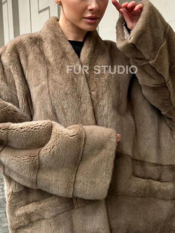 Мех данной шубы аукционная норка , цвет бежевый. Предлагается в размерах от 46 до 48. Длина модели 70-75 см, что выгодно подчеркивает фигуру девушек. Эта модель идеально подойдет для девушек и женщин, предпочитающих роскошные натуральные меха.