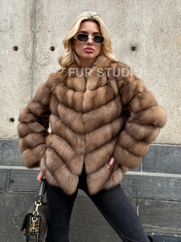 Полушубок из куницы с V-образным воротником доступна для покупки в нашем шоуруме Furs Studio в . У нас так же есть доставка во все города России. Добавьте немного роскоши в свой гардероб с этой шубой, которая будет служить вам многие годы.