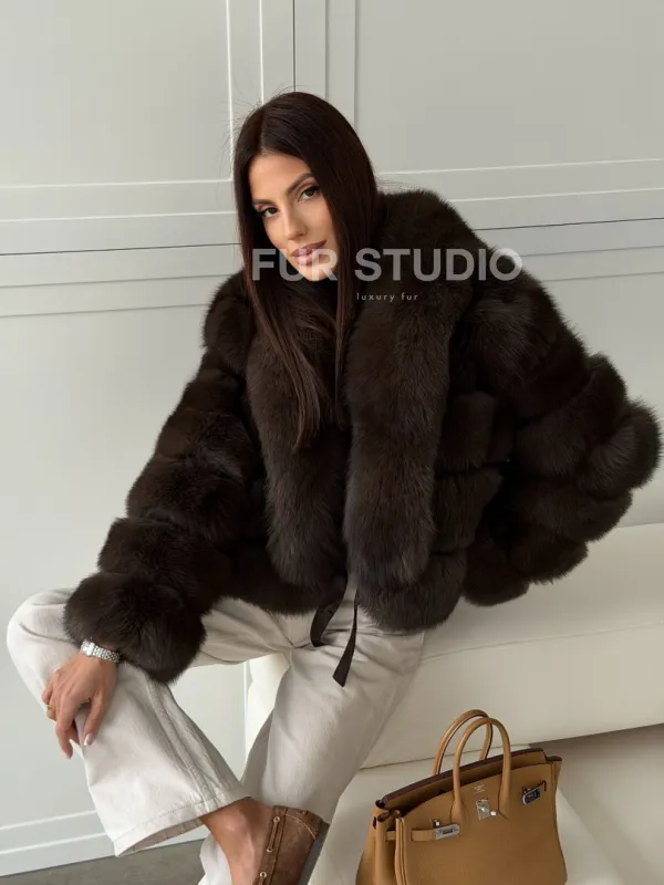 Мех данной шубы финский песец, цвет коричневый. Предлагается в размерах от 42 до 48. Длина модели 50-55 см, что выгодно подчеркивает фигуру девушек. Эта модель идеально подойдет для девушек и женщин, предпочитающих роскошные натуральные меха.