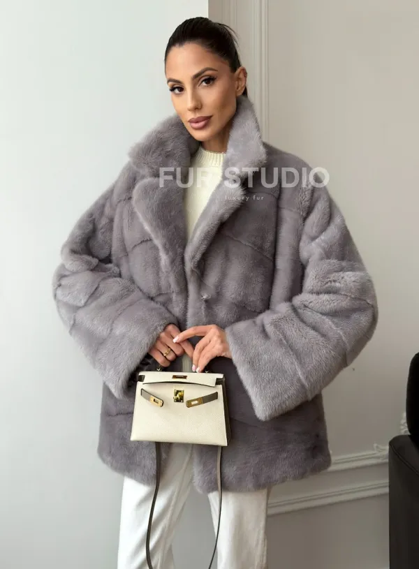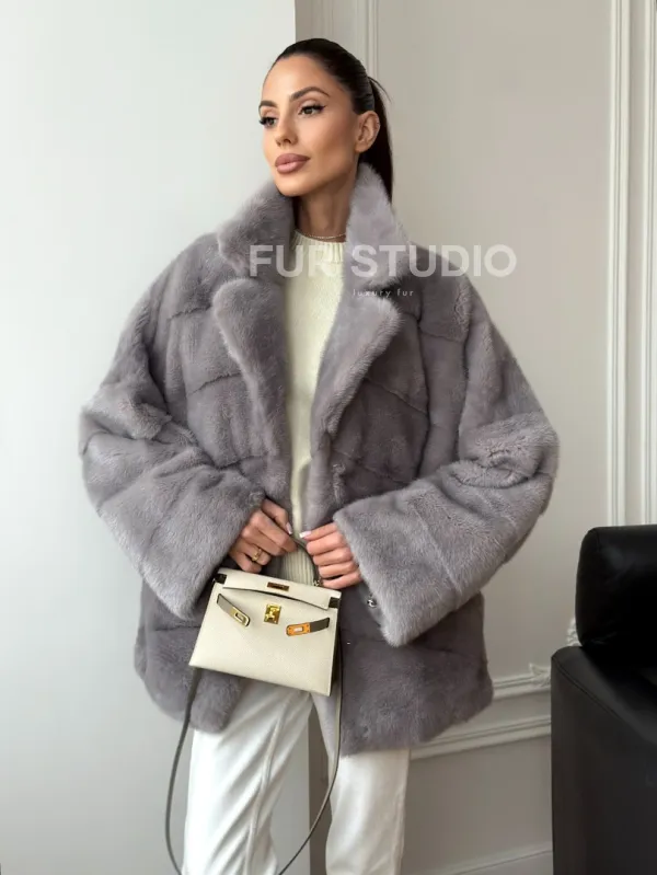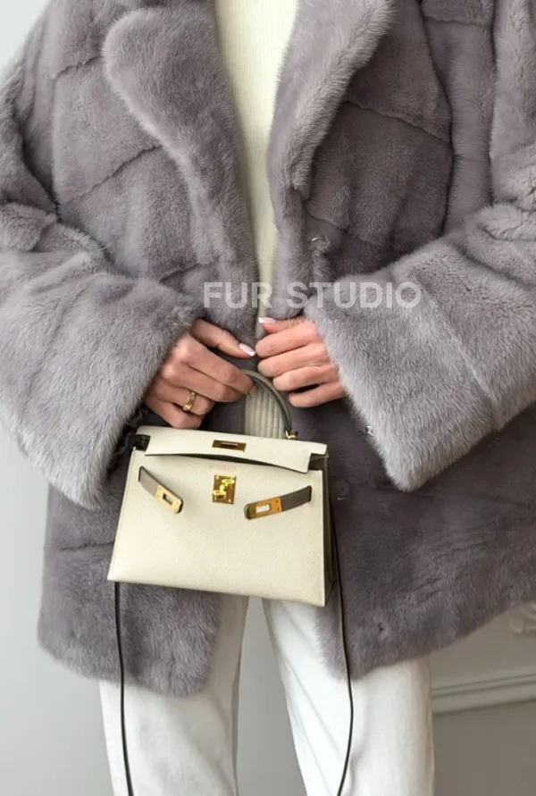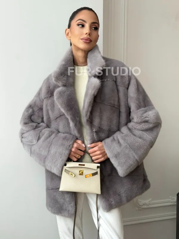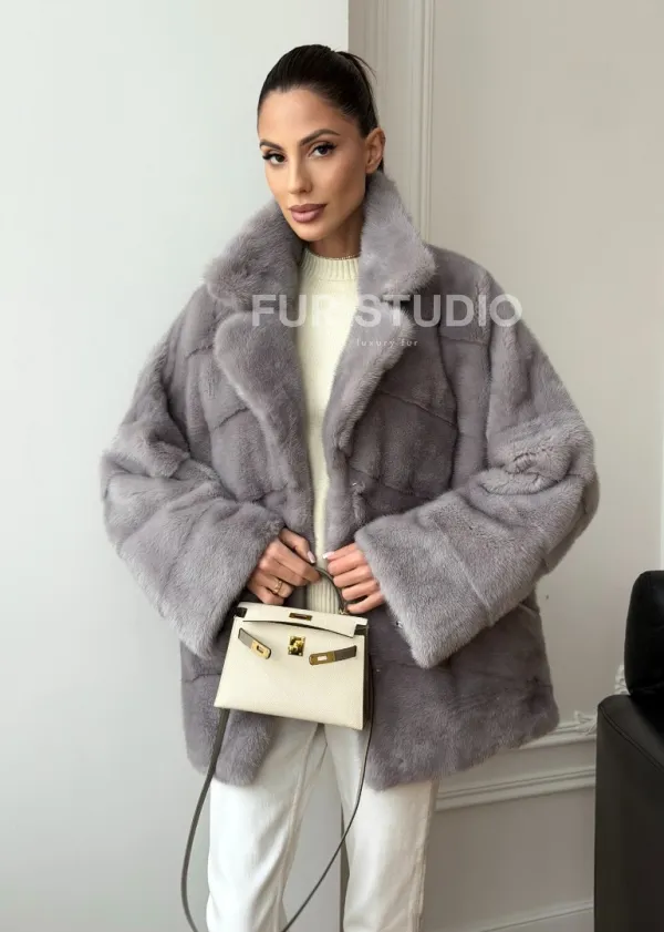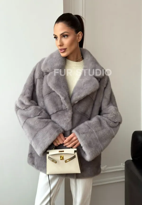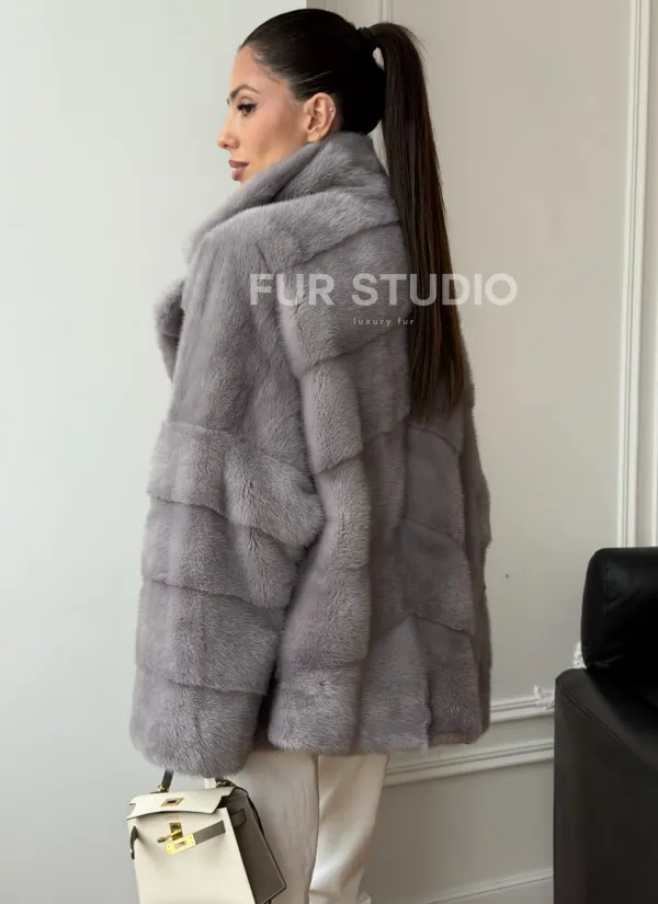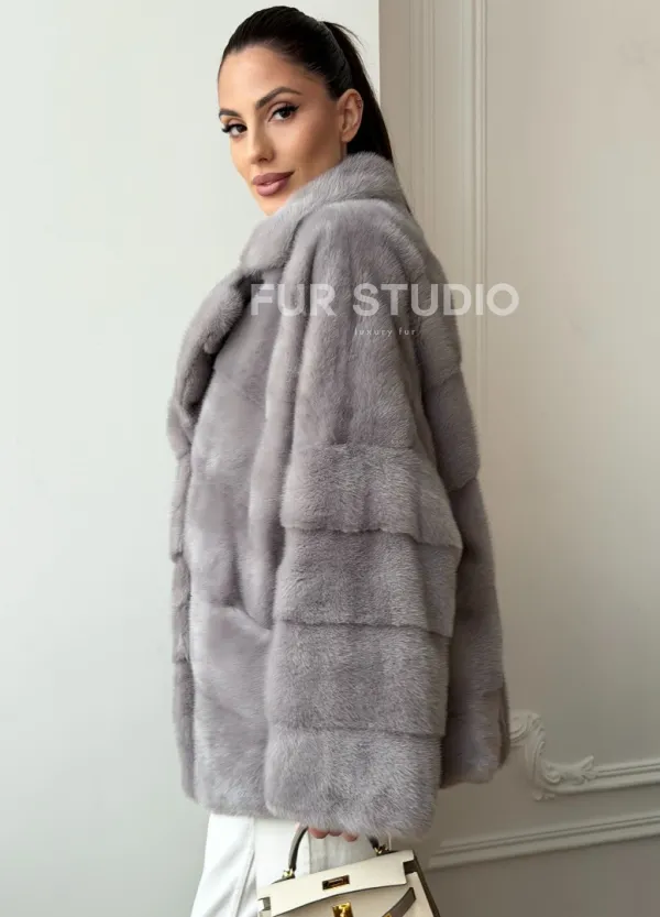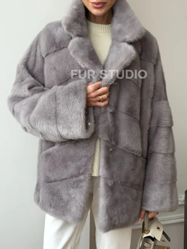 Мех данной шубы аукционная норка, цвет серый. Предлагается в размерах от 42 до 54. Длина модели 70-75 см, что выгодно подчеркивает фигуру девушек. Эта модель идеально подойдет для девушек и женщин, предпочитающих роскошные натуральные меха.