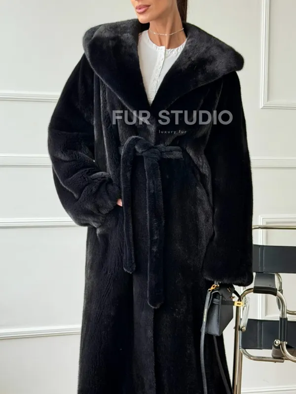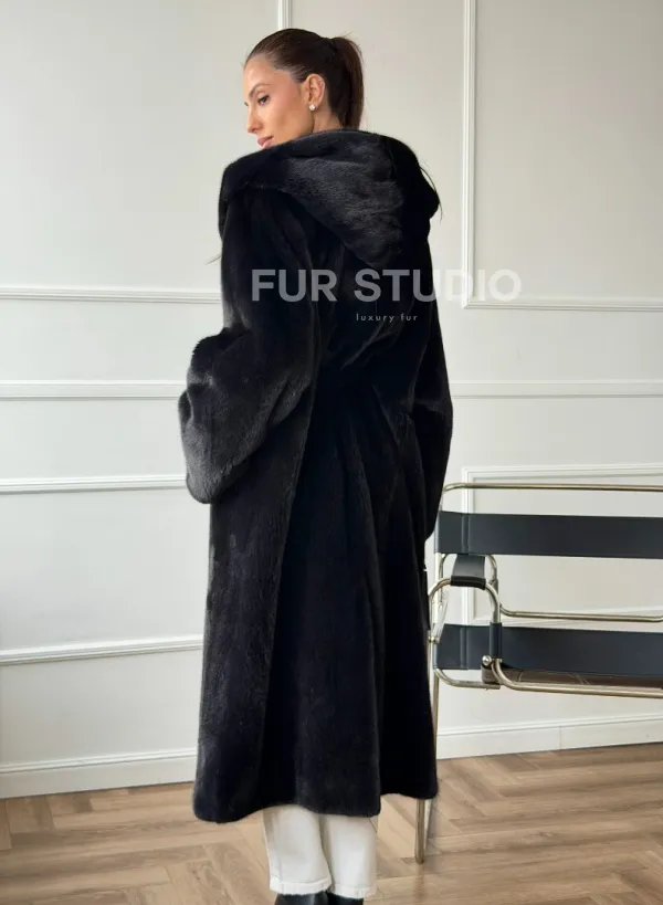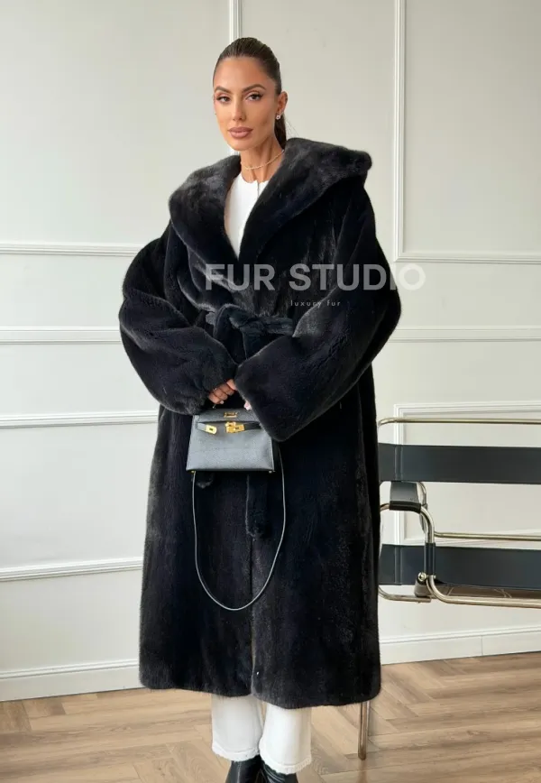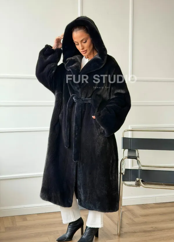 Шуба из норки BLACKGLAMA с капюшоном в роспуск 102672