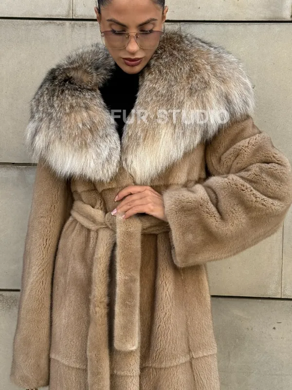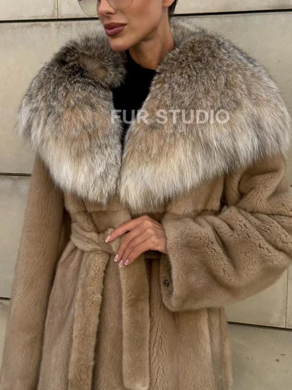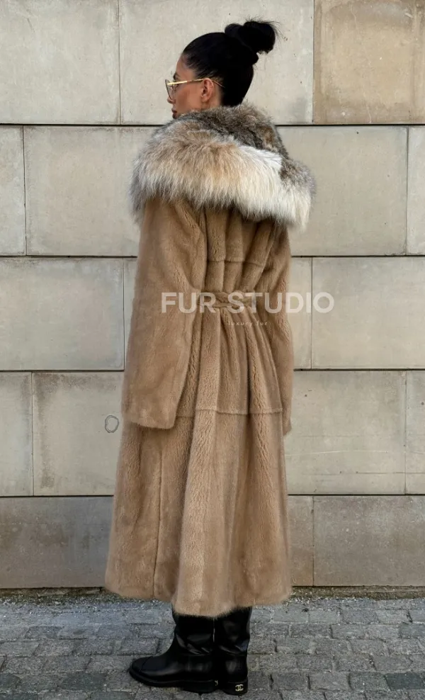 Шуба из норки Caramel с капюшоном из меха рыси доступна для покупки в нашем шоуруме Furs Studio в . У нас так же есть доставка во все города России. Добавьте немного роскоши в свой гардероб с этой шубой, которая будет служить вам многие годы.