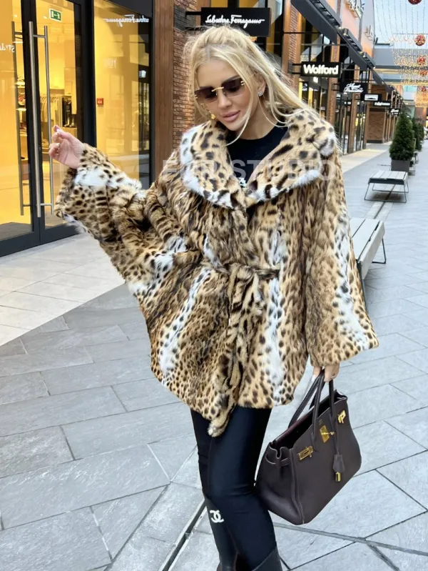 Шуба из оцелота под леопард модель «Летучая мышь» 100095