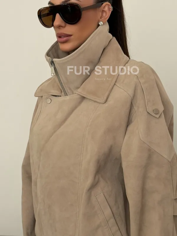Современная куртка из замшевой кожи доступна для покупки в нашем шоуруме Furs Studio в , где также предоставляется удобная доставка во все города России.