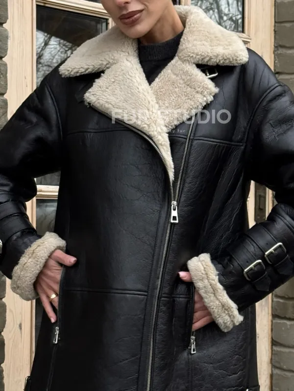 Удлиненная дубленка на белой овчине 100254